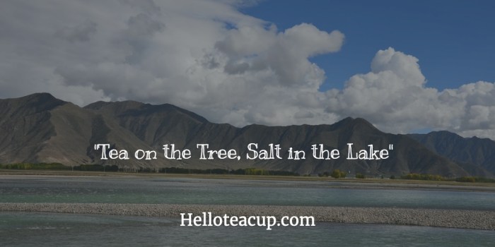Tibetans like salt in their tea. This custom can be seen in the Tibetan sayings: “Tea on the tree, salt in the lake”; “Loving each other just like tea and salt”; “Tea without salt is like languages without proverbs.”